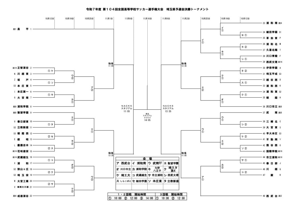 令和7年度 第104回全国高等学校サッカー選手権大会 埼玉県予選会決勝トーナメントの組み合わせが決定
